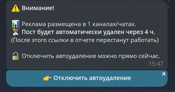 ❌ Забыли удалить рекламу → ✅ Авто-удаление через заданное время